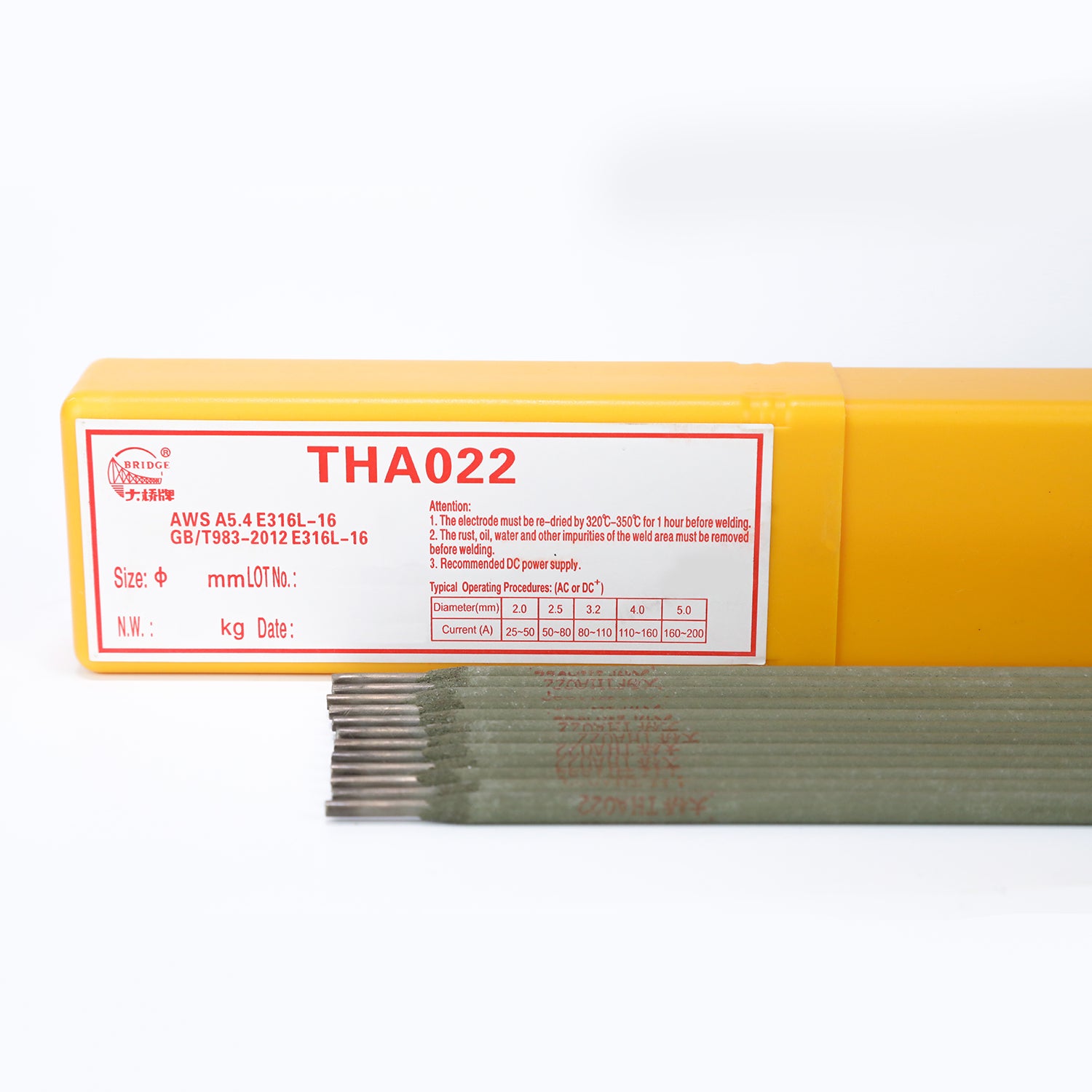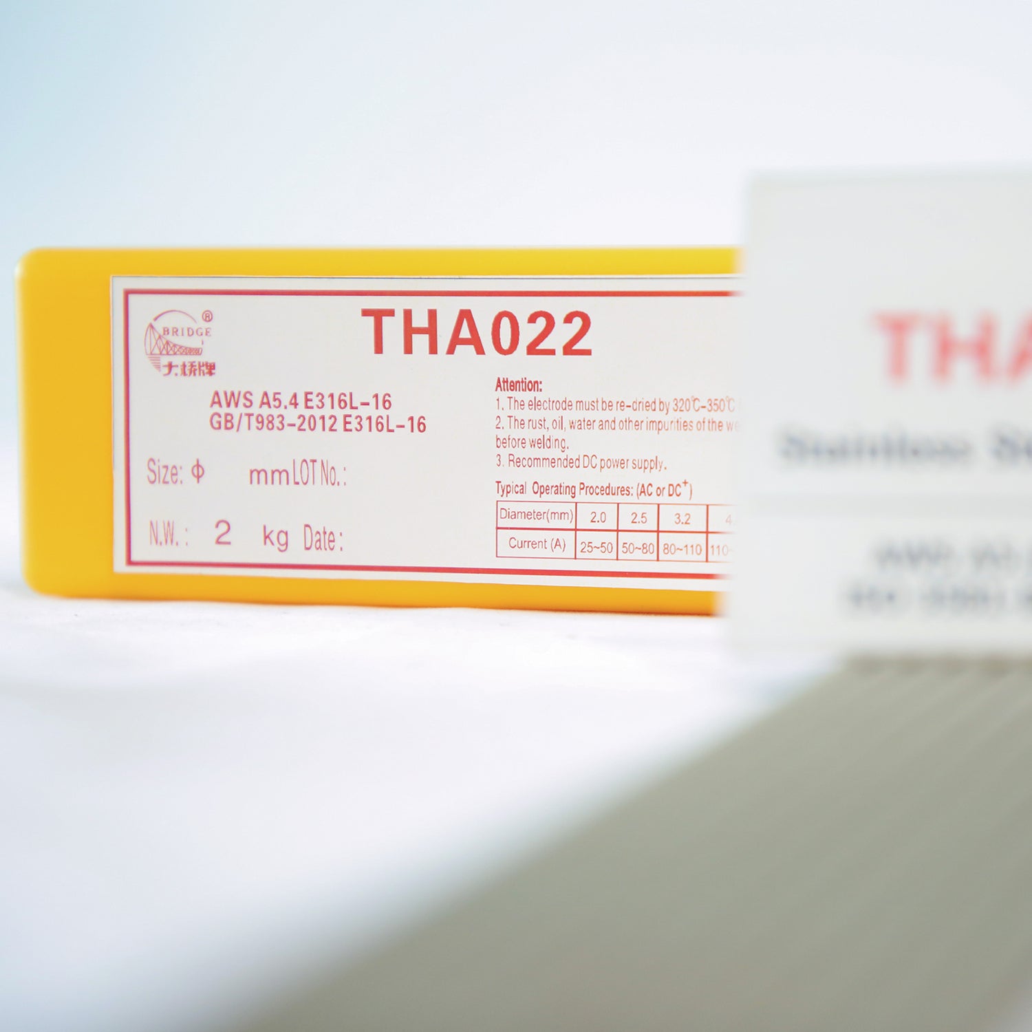 THA022 is rutile type stainless steel electrode with ultra-low carbon. Can be weld for all-position with AC or DC. It have excellent welding performance as good arc stiffness, little spatter, easy slag removal etc.