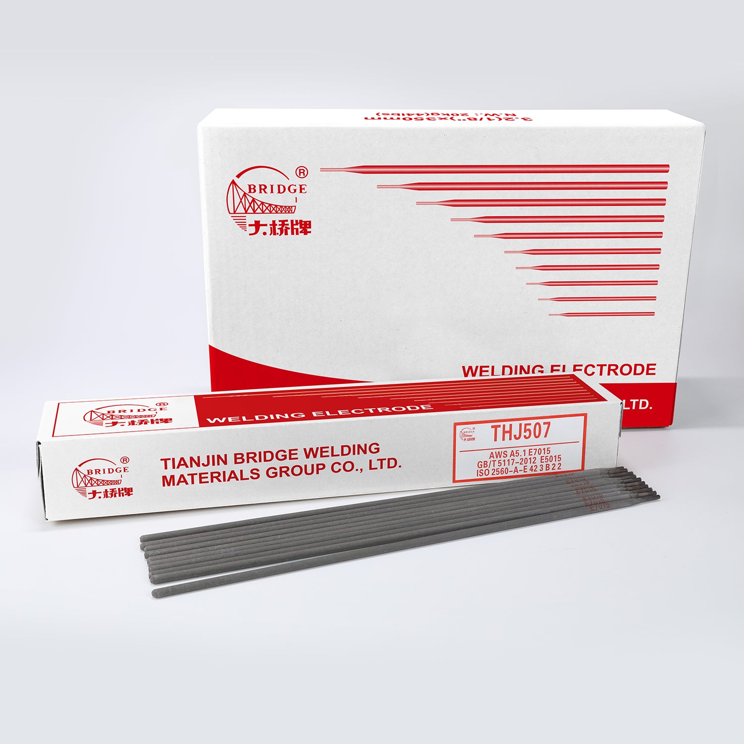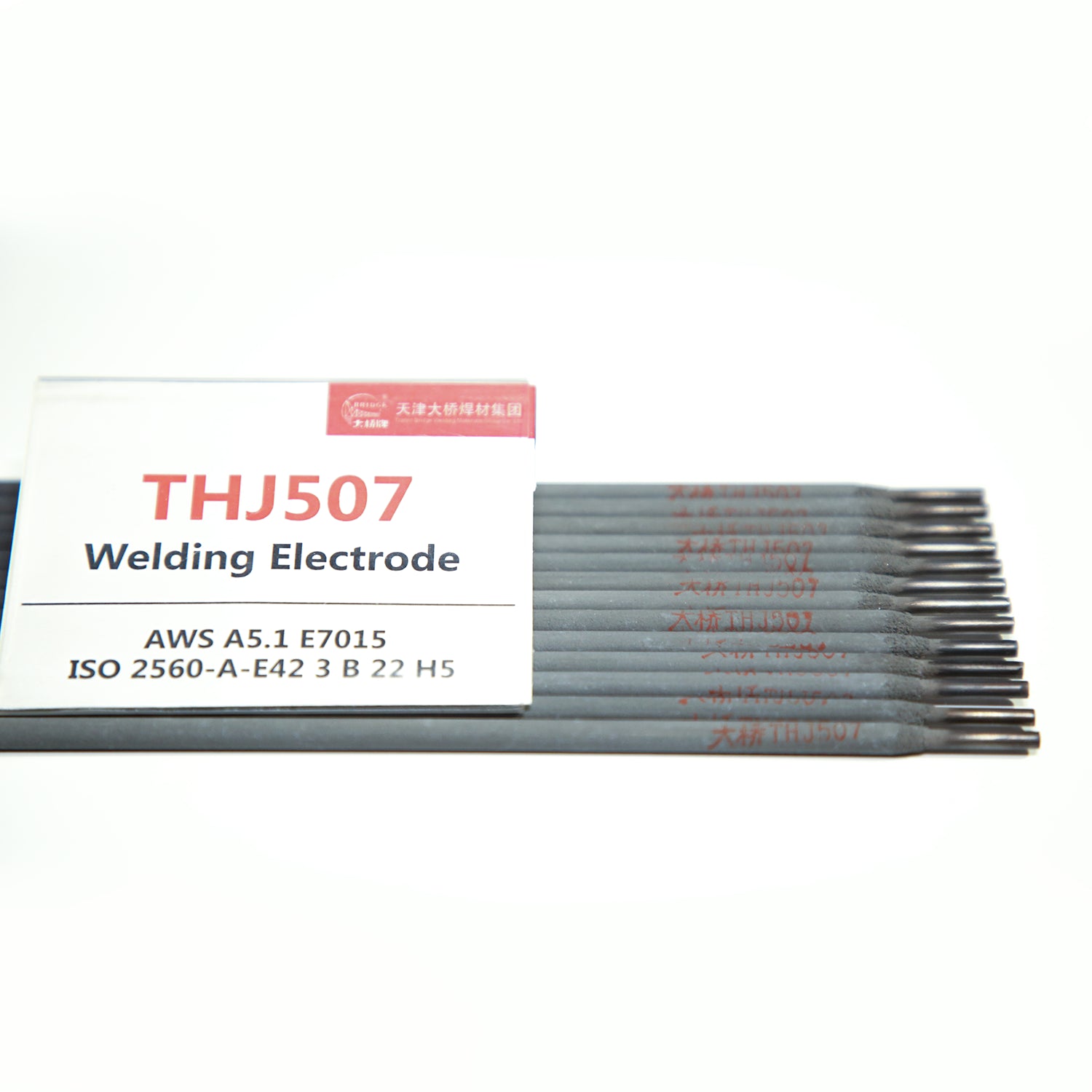 THJ507 is basic-sodium type electrode with low hydrogen. Can be weld for all-position with DC+ only. It have excellent welding performance as good arc stiffness, little spatter, easy slag removal etc., and perfect mechanical properties of deposited metal.