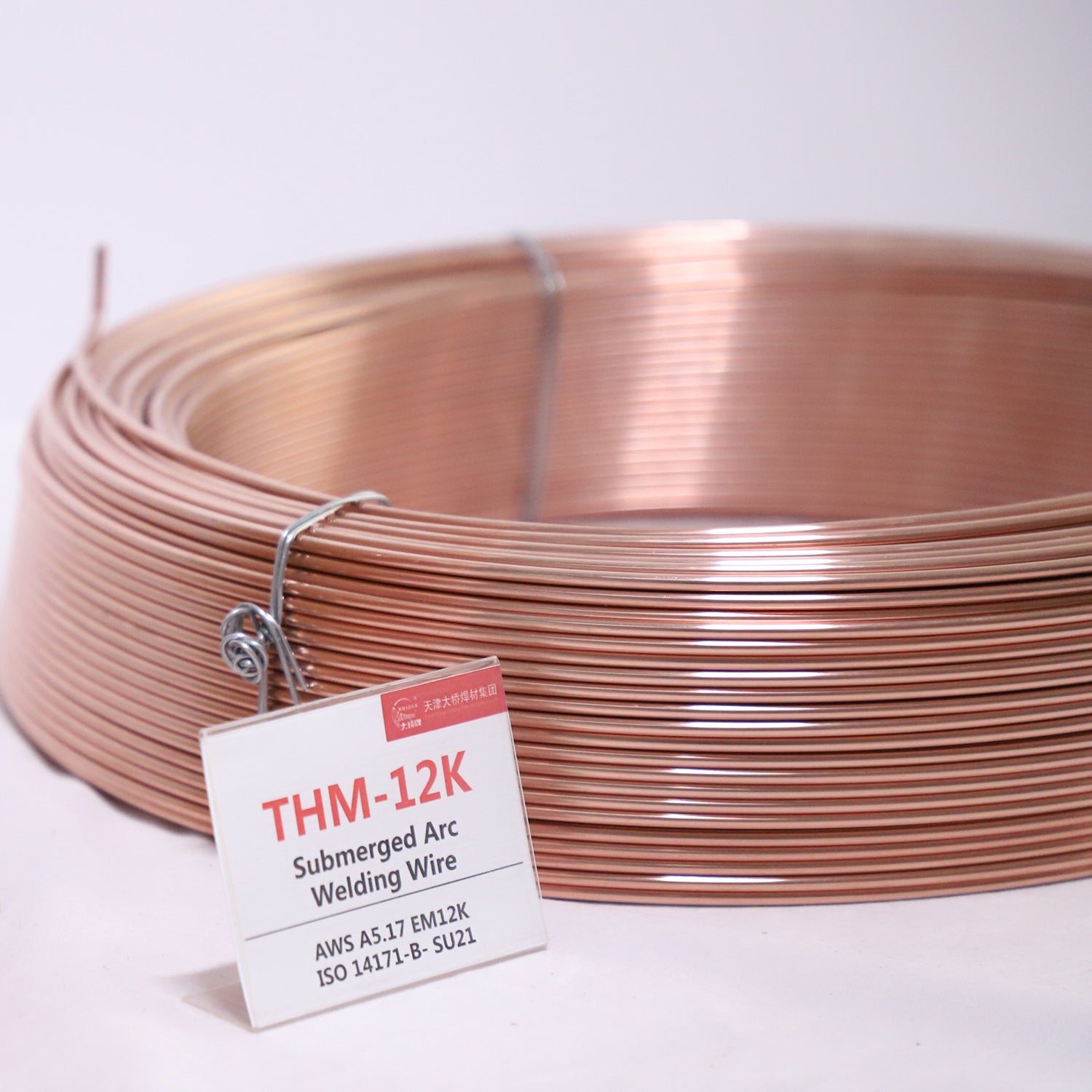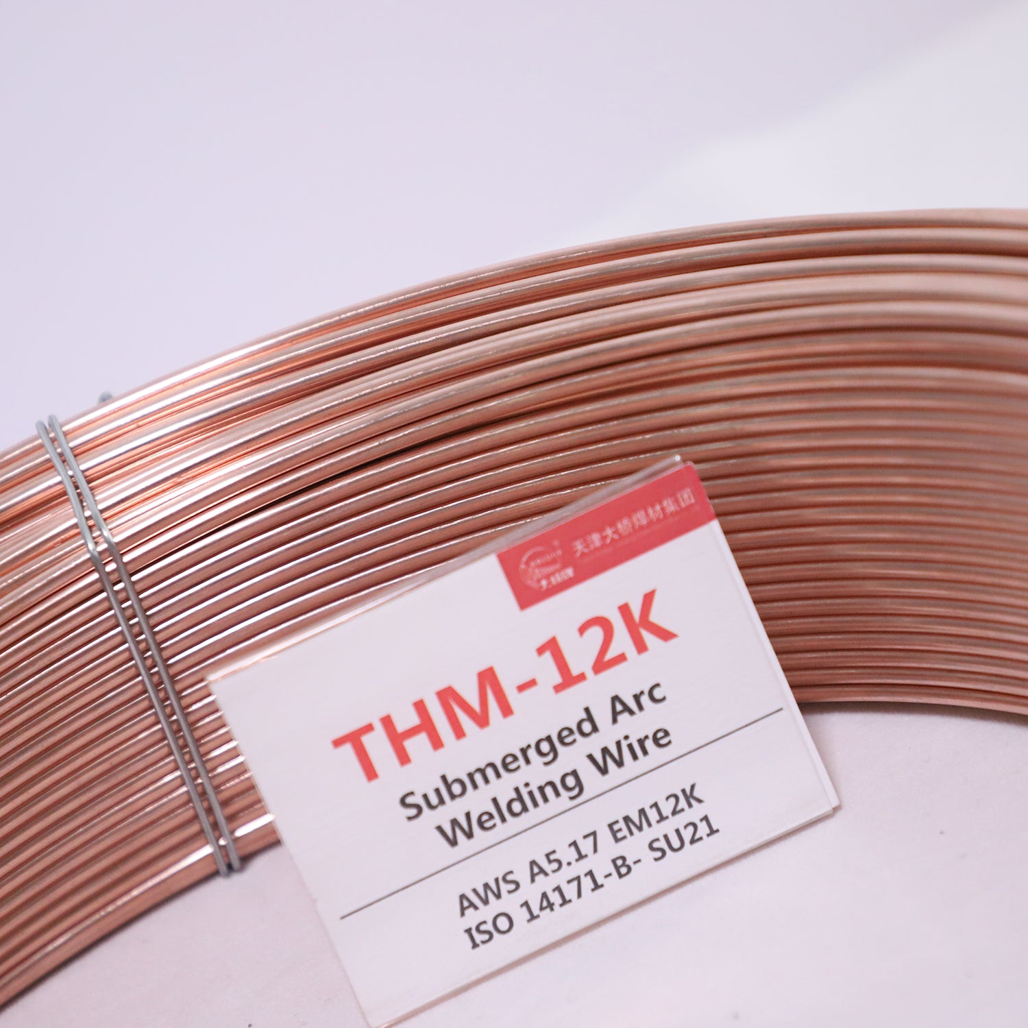 THM-12K is copper coated solid wire, and it can be used in automatic submerged arc welding with welding flux. The weld metal has excellent mechanical properties.