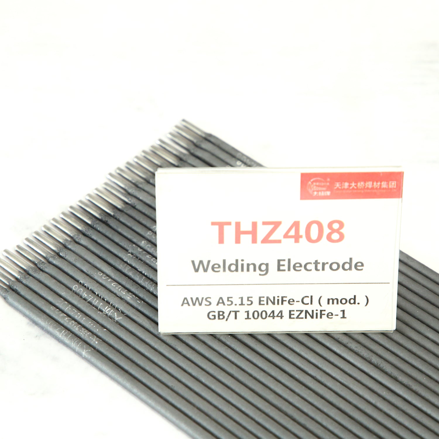 THZ408 is cast iron electrode made by graphite type coating and Ni-Fe core rod. Can be weld by AC or DC and not need preheating or just preheating to 200℃ when welding. High strength, excellent elongation and lower coefficient of linear expansion of welding metal.